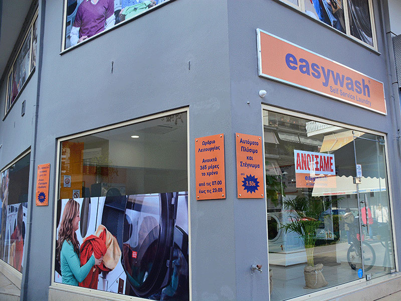 The launderette is located in 18 Parmenionos Street, Katerini and is open daily from 7am to 11pm every day and Sundays and Holidays, ALL year round. The easywash Self Service Laundry Katerini is equipped with commercial washers with coin receiver and commercial dryers with coin receiver by the American companies Maytag Commercial, and American Dryer. The laundromat also has a soap vending machine and a coin changer.