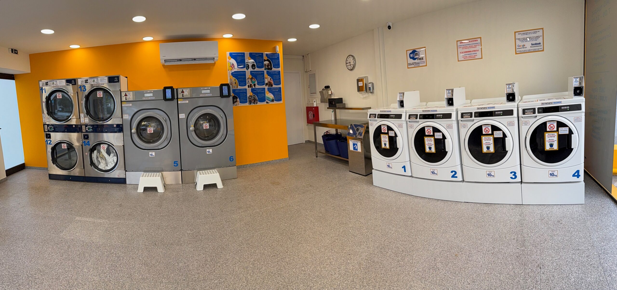 Washing in a 10 kg professional washing machine (clothes, sheets, towels) from €4 in 30 minutes.